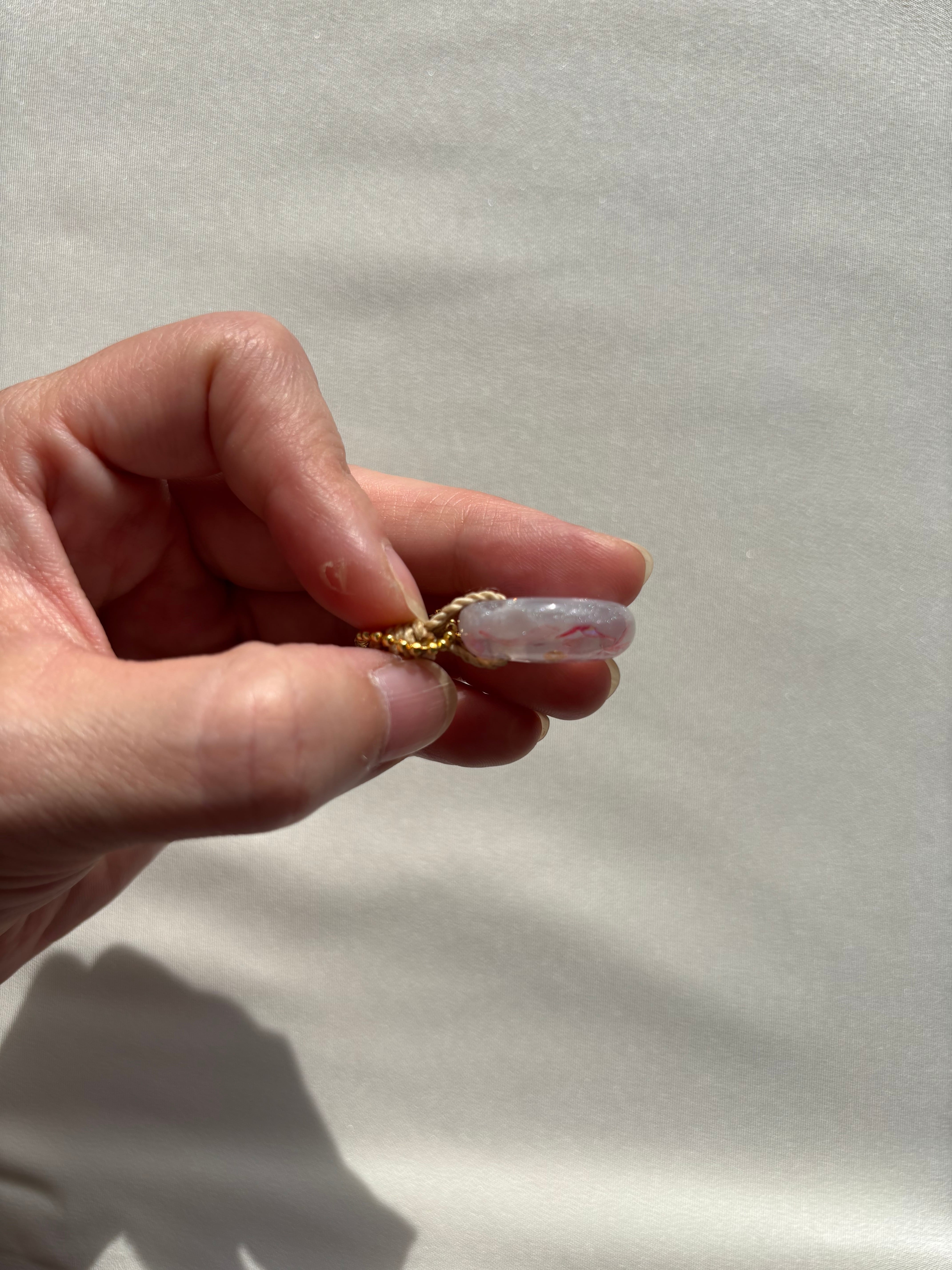 淡く透きとおる桃色の中に、静かな輝きを宿した勾玉。